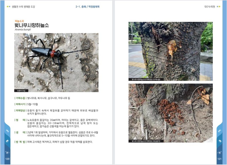 특히, 풍부한 시각 자료와 병해충 진단 포인트, 방제 기준 등을 수록해, 조경수 및 가로수 관리에 종사하는 전문가뿐만 아니라 일반 시민들도 쉽게 이해하고 활용할 수 있도록 구성됐다.