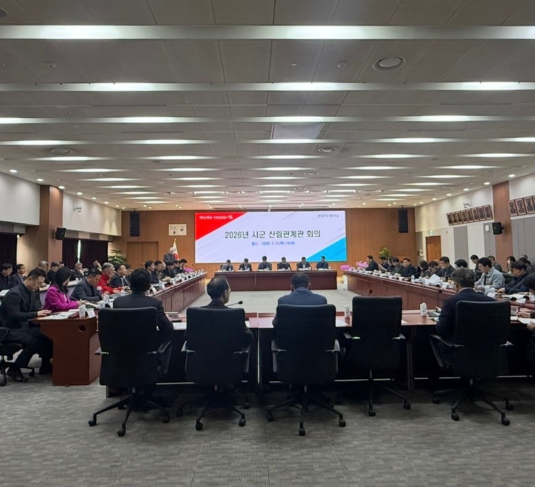 도는 6일 도청 대회의실에서 김영명 도 환경산림국장, 도 산림자원연구소, 시군 산림녹지 관련 부서장, 산림조합 등 관계관 80여 명이 참석한 가운데 ‘2026 시군 산림관계관 회의’를 개최했다.