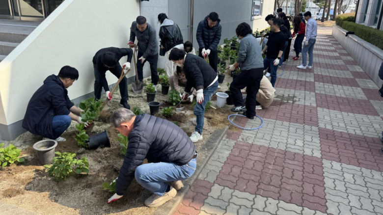 이날 행사에서는 김광래 총장 등 직원 30여 명이 참여해 수목(수국) 150주를 식재하고, 교내 환경정화 활동을 하였다.