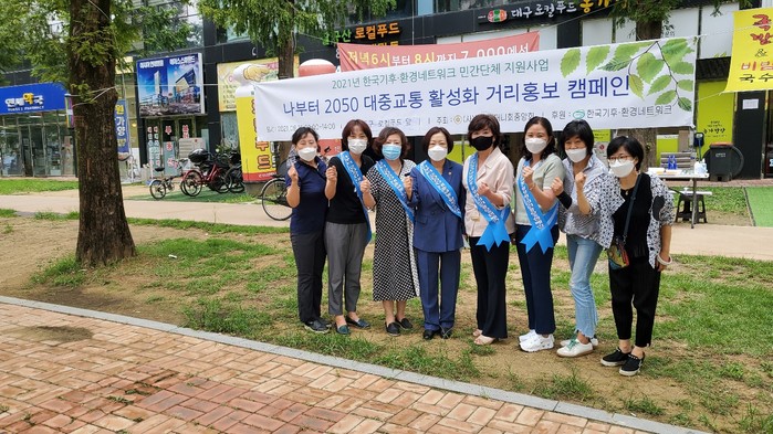 [대구=세계타임즈 한성국 기자] (사)대한어머니회 대구광역시연합회(회장 신정옥)는 8월 16일 대구광역시로컬푸드 앞에서 “나부터 2050 탄소중립 대중교통 활성화 캠페인”을 실시하였다.