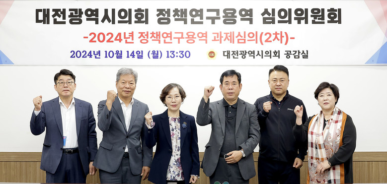 현재 대전광역시의회 22명의 의원들은 6개 의원연구회를 구성해 활동하고 있으며, 각 연구회에서는 자치법규 입안 및 의정활동에 밑거름이 될 수 있는 정책연구용역을 발주하고 있다. 지난 8월 14일 수행한 4건의 정책연구용역 과제심의에 이어, 이번에는 추가로 2건의 연구과제가 내실 있게 수행될 수 있도록 연구용역의 전반적인 사안을 심의하는 자리를 가졌다.