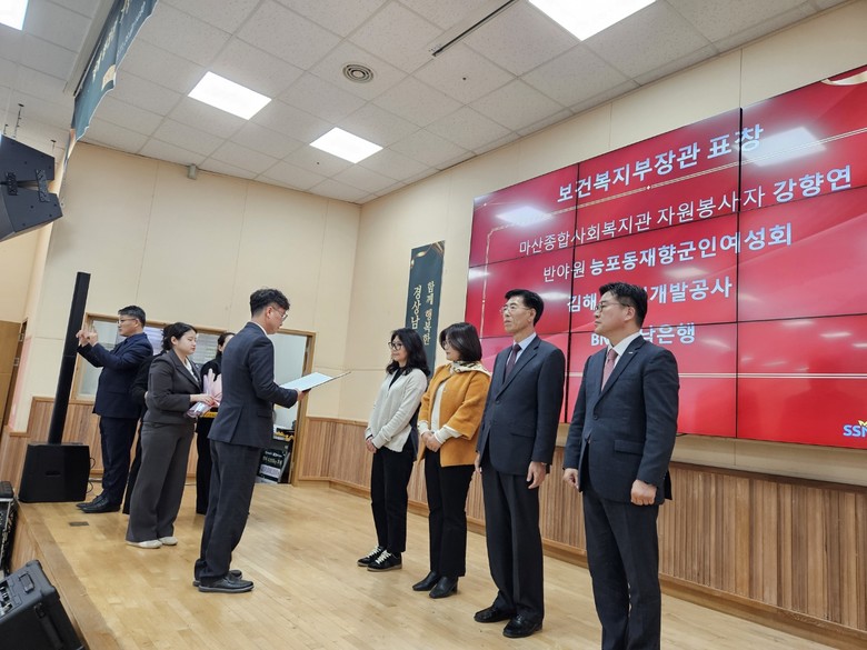 보건복지부 장관 표창은 16년간 어르신 대상 식사 배달 자원봉사를 이어온 마산종합사회복지관 강향연 자원봉사자와 중증장애인거주시설에서 18년간 봉사해 온 거제 능포동재향군인여성회 등 3개 단체가 수상했다.