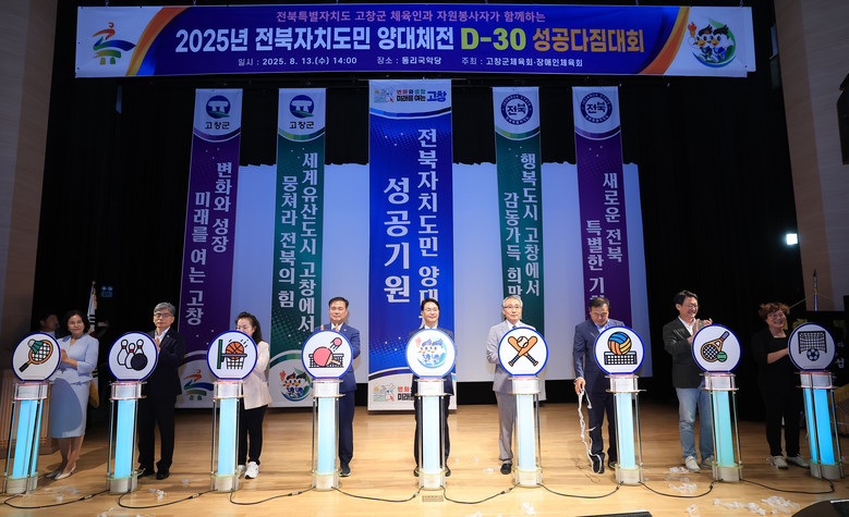 13일 고창군에 따르면 이날 오후 2시 동리국악당에서 ‘고창군 체육인과 자원봉사자가 함께하는 2025 전북특별자치도민 양대체전 D-30 성공다짐대회’를 열었다.