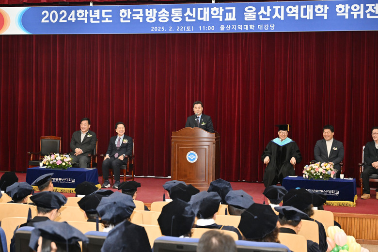 [중구 세계타임즈=이호근 기자] 2024학년도 한국방송통신대학교 울산지역대학 학위전수식이 22일 방송통신대학교 본관에서 김영길 중구청장, 윤여각 방통대 학장, 김기현 의원, 박성민 의원, 졸업생 등 관계자들이 참석한 가운데 열렸다.