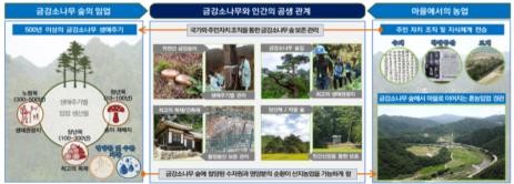 또한, 지속적인 금강송 산지농업시스템의 보전과 관리를 위해 보부상 옛길을 소나무 숲길 탐방로로 조성하고, 숲 해설사, 밥차, 주막촌, 민박을 운영하며 지역 일자리 창출과 소득 증대에 이바지하고 있어 지속 가능한 농업유산의 가치를 실천하는 모범적인 사례로 평가받고 있다.