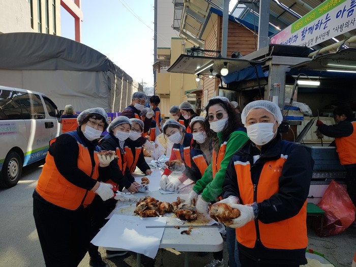 이날 봉사에는 신상일 단장, 유희자 단장을 비롯해서 회원 40명이 참석을 해서 대전광역시 시각장애인연합회 법인창립 21주년 행사에 참석한 시각장애인 400명에게 바비큐 통닭을 반마리씩 전달을 하였다.