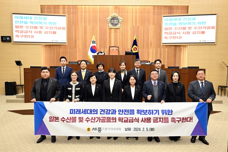 한편, 세종시의회는 ‘일본산 수산물 및 수산가공품의 학교급식 사용 금지 촉구 결의안’을 국회의장과 국무총리, 교육부, 해양수산부, 식품의약품안전처, 외교부 등에 이송할 예정이다.