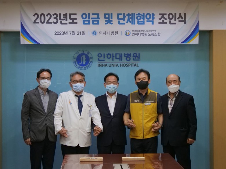 앞서 인하대학교 병원 노동조합은 27, 28일 조합원 찬반투표를 통해 잠정합의안을 재적조합원 94.5% 투표, 90.7%의 압도적인 찬성율로 통과시켜 7월 31일 임단협 조인식을 개최하였다.