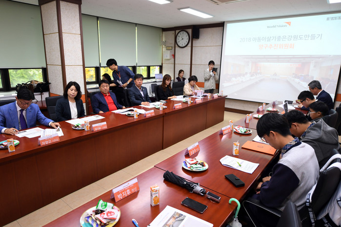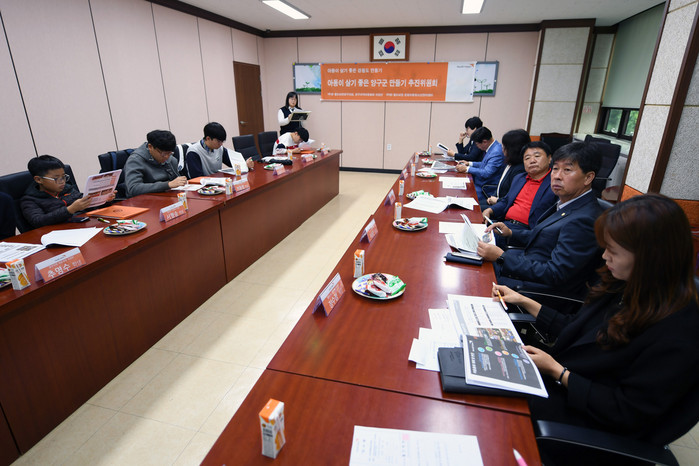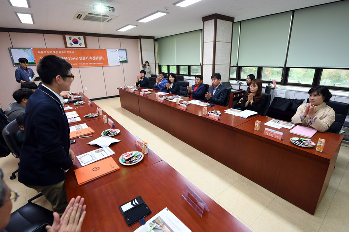 [양구군=세계타임즈 김민석 기자] 아동이 살기좋은 양구군만들기 추진위원회 간담회가 5일 양구교육지원청 3층 대회의실에서 이상건 군의회의장, 장기묘 교육장, 임태현 아동이살기좋은양구군만들기추진위원장, 위원, 학생들이 참석한 가운데 열렸다.