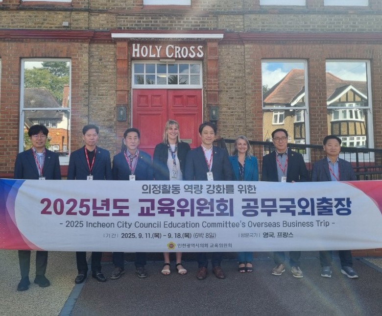 영국 출장에서는 교육위원회 의원 6명 등 총 10명의 대표단이 참여하며, 홀리크로스 스쿨, 뉴 몰든 공공도서관 등을 방문했다. 각 기관 방문으로 교육 혁신과 지역사회 중심 학습 모델을 직접 체험하고, 우수 사례를 인천 교육정책에 반영할 예정이다.