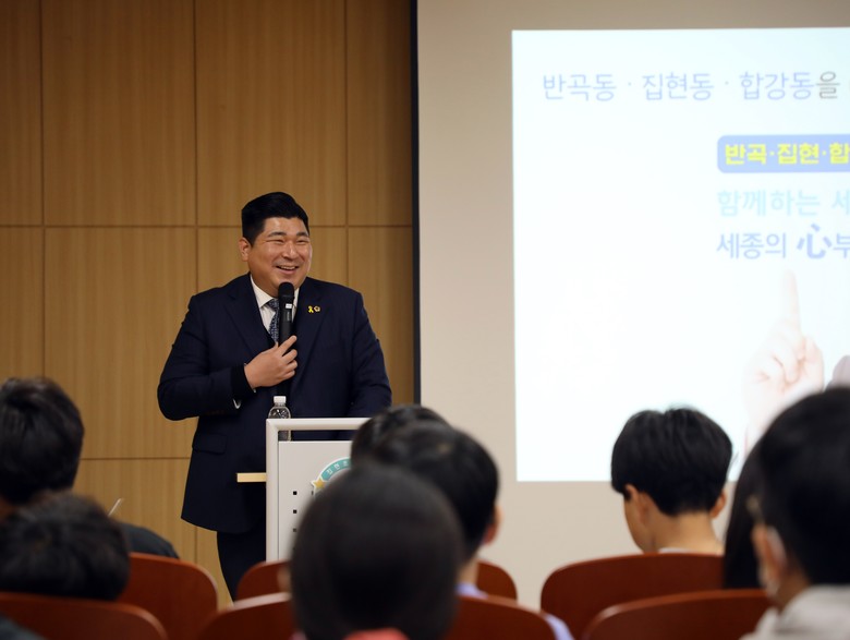 이 외에도 김 의원은 신호등 설치·해체 문제, 세종시 예산이 어디로 쓰이는지, 민트초코(민초) 좋아하는지 등 학생들의 다양한 질문에 답하며 학생들과 격의 없는 대화를 나눴다.