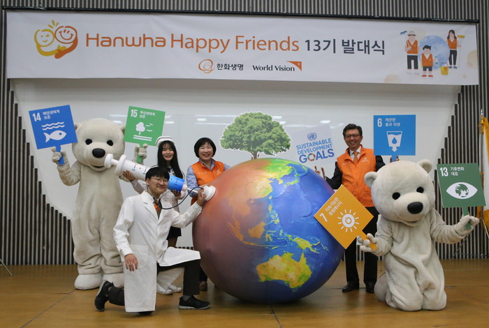 ‘한화해피프렌즈 청소년봉사단’은 한화생명이 2006년부터 월드비전과 함께 운영해온 봉사단으로 지난 12년간 4500여명의 청소년 봉사단원들을 배출했다. 전국 각 지역 고등학생들은 대학생인 팀장과 함께 창의적이고 능동적인 봉사활동으로 지역사회 행복헤 힘써왔다. 겨울에는 강원도 폐광지역 독거노인 분들께 연탄을 전달해 왔으며, 해외자원봉사활동에도 참여해 한국을 넘어 전 세계적으로 행복 나눔을 실천한다.
