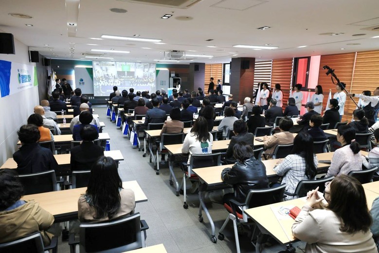 21일 한국 전통문화전당에서 HWPL 글로벌12지부 ‘동행 캠페인’ 발대식이 진행된 가운데 참석자들이 단체사진을 촬영하고 있다.