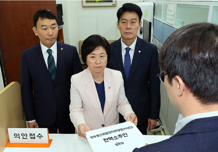 [세계타임즈 = 심귀영 기자] MBC 경영진 교체를 놓고 여야가 방송통신위원회 부위원장 탄핵과 부위원장 자진 사퇴로 정면충돌하는 모습이다. 민생 대신 방송사 헤게모니 문제가 정치권 전체를 흔드는 듯한 이상 현상마저 보인다.더불어민주당은 이상인 방통위 부위원장 탄핵소추안을 발의했고, 곧바로 국회 본회의에 보고됐다.민주당은 이 부위원장은 상임위원 2인 이상의 요구로 위원장이 회의를 소집하며 재적 위원 과반수 찬성으로 의결하도록 한 방통위법을 위반했다고 탄핵 사유를 밝혔다.이 부위원장에 대해 위원장 직무대행으로서 새로운 위원장이 임명될 때까지 방통위의 통상적인 업무만을 집행할 수 있는데도 단독으로 공영방송 임원 선임을 위한 절차를 진행하고 있다고 지적했다.국민의힘 신동욱 원내수석대변인은 논평에서 민주당의 헌정질서 파괴 행위가 군사작전처럼 진행된다며 비상식적 정치 폭력을 멈추라고 촉구했다.국민의힘 원내 관계자는 방통위법은 부위원장 및 위원의 직무대행 자격을 명시할 뿐, 탄핵에 관한 규정은 없다며 헌법 역시 탄핵소추 대상을 법률에서 정한 공무원으로 명시해 방통위 부위원장은 이에 해당하지 않는다고 말했다.본회의에 보고된 탄핵소추안은 24시간 이후, 72시간 이내 열리는 본회의에서 무기명 표결된다. 민주당이 방송 4법 처리를 강행하고, 국민의힘의 필리버스터에 민주당이 토론 종결권으로 맞설 경우 이르면 26일 열릴 본회의에서 표결될 전망이다.민주당은 윤석열 정부 들어 방통위를 상대로 탄핵소추를 거듭해왔다. 이동관·김홍일 전 방통위원장에 이어 이번에는 위원장 직무를 대행하는 이 부위원장까지 세 번째다. 탄핵소추안이 가결될 경우 헌법재판소 판단이 나올 때까지 직무가 정지되는 점을 노린 것이다.민주당의 노림수에 정부·여당은 탄핵소추안 가결 전 사퇴라는 강수로 맞서왔다. 이 전 위원장과 김 전 위원장이 사퇴했고, 이번에는 이 부위원장마저 사퇴할 것으로 전망된다.정치권에 따르면 이 부위원장은 26일 오전까지 사퇴를 공식화할 것으로 알려졌다. 이 부위원장이 사퇴하면 방통위는 일시적으로 상임위원이 1명도 없는 초유의 사태를 맞는다. 국회 인사청문회가 필요 없는 차관급인 만큼, 윤 대통령은 후임을 곧바로 임명할 것으로 보인다.정부·여당과 야당이 이처럼 방통위의 의사결정 구조를 놓고 극한 대결하는 것은 MBC 대주주인 방송문화진흥회 이사진 선임 권한을 방통위가 쥐고 있기 때문이라는 게 일반적인 해석이다.민주당이 이진숙 방통위원장 후보자가 임명되기 전까지 위원장 직무대행 역할을 하는 이 부위원장의 직무를 정지시켜 MBC 대주주인 방문진 이사진 선임을 막겠다는 의도라는 것이다.국회 과학기술정보방송통신위원회 야당 간사인 민주당 김현 의원은 기자들과 만나 방문진 이사 선임도 염두에 두고 탄핵소추안을 발의한 것인가라는 질문에 그것과 연결된 것은 아니다라고 부인했다.이진숙 후보자는 인사청문회에서 민주당이 이 부위원장을 탄핵하겠다는 얘기를 듣고 충격을 금할 수 없었다고 말했다.