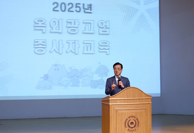 [대전 세계타임즈=이채봉 기자] 대전시의회 조원휘 의장은 22일 충남대학교에서 개최된 2025년 옥외광고사업 종사자 교육에 참석해 도시경관 향상과 올바른 광고문화 정착을 위한 옥외광고 종사자들의 노고에 감사를 표했다.