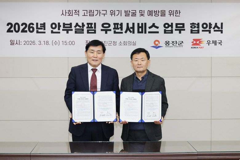 군 관계자는 “인천우체국과의 협력을 통해 고독사 예방이 지역사회 전체의 공동 과제라는 인식을 확산시키고, 앞으로도 지역 주민 모두가 서로를 살피는 따뜻한 옹진군을 만드는 데 최선을 다하겠다”고 밝혔다.