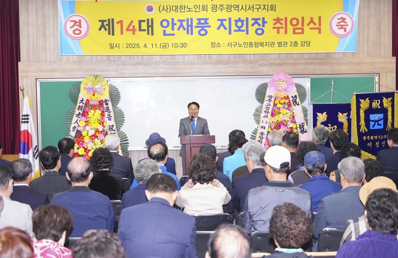 [광주 세계타임즈=손권일 기자] 강기정 광주광역시장이 11일 오전 서구 노인종합복지관에서 열린 ‘대한노인회 서구지회 안재풍 지회장 취임식’에 참석해 축사를 하고 있다./광주광역시 제공