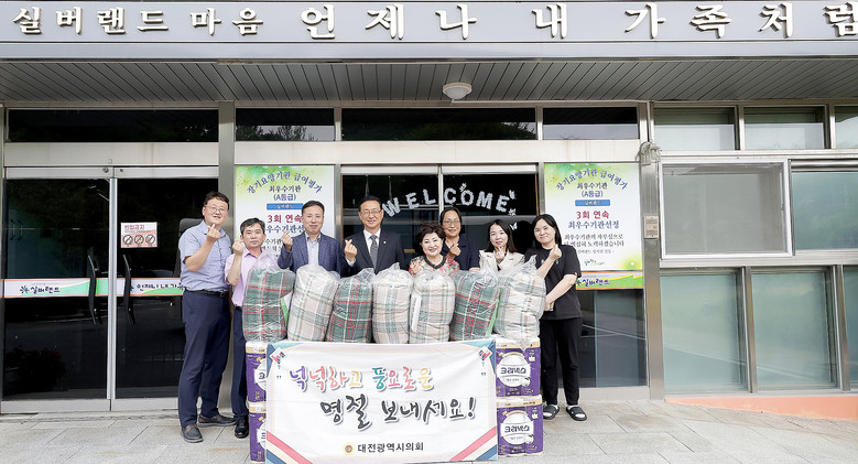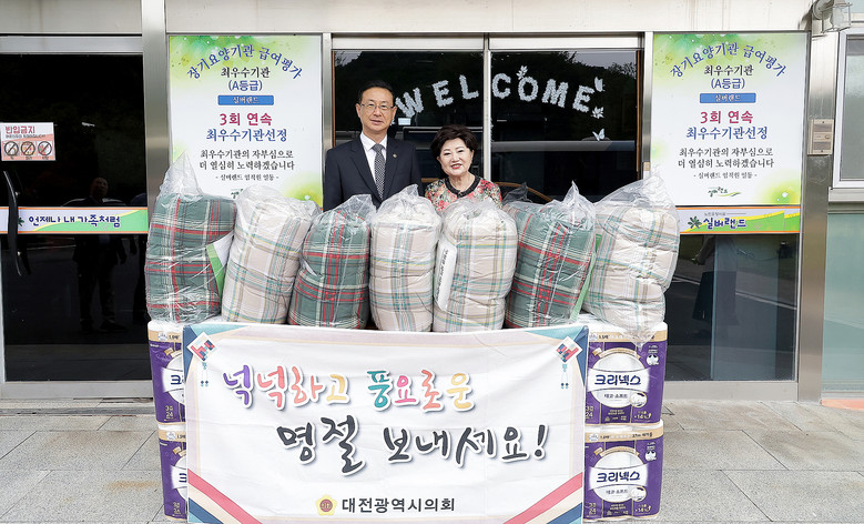 [대전 세계타임즈=이채봉 기자] 대전시의회 민경배(중구3, 국민의힘) 예산결산특별위원장은 추석 명절을 맞아 6일 관내 노인요양시설인 실버랜드(중구 어남동)를 찾아 위문품을 전달했다.