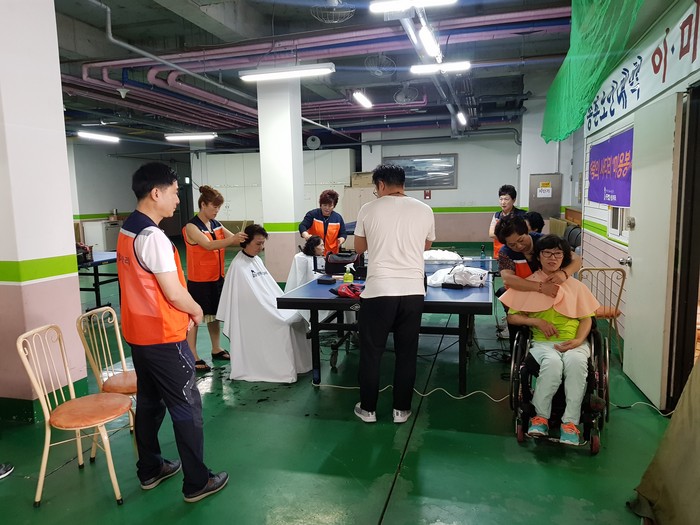 이날 봉사에는 밴드 회원 60명이 참석해서 1층 미용봉사, 2층 위문공연 봉사, 5층 삼계탕 300마리 봉사를 대덕구장애인들에게 즐거움과 행복을 전했다.