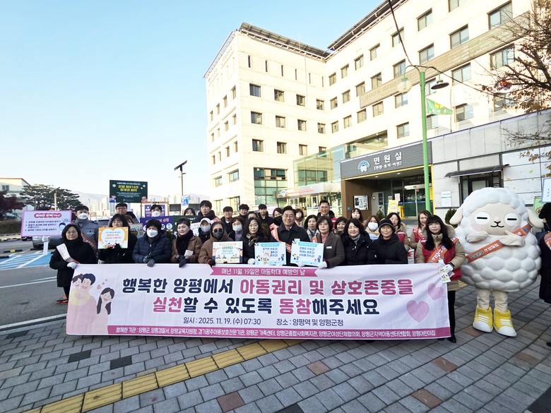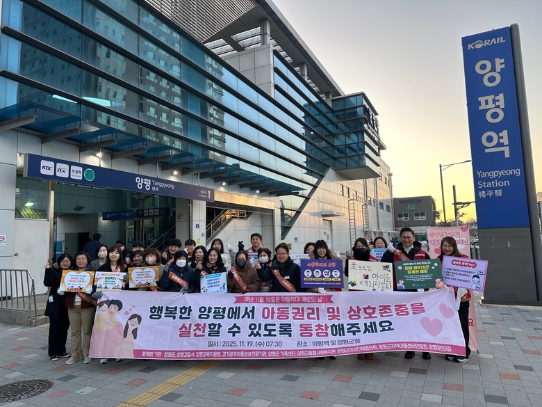 이번 캠페인은 아동 권리 보호와 상호 존중 문화 확산을 위해 마련된 행사로, 양평군 주관으로 양평경찰서, 양평교육지원청, 경기광주아동보호전문기관, 양평군가족센터, 양평종합사회복지관, 양평군여성단체협의회, 양평군지역아동센터연합회, 양평어린이집 등 총 50여 명이 참여해 아동학대 예방 홍보 활동을 진행했다.