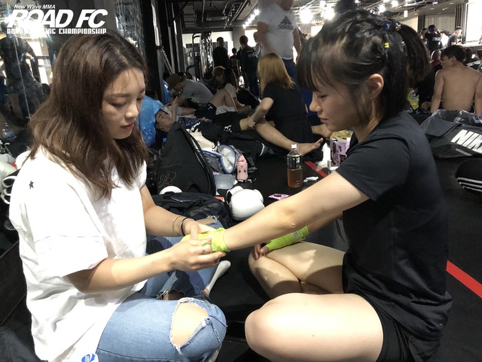 현장에는 경기에 출전하는 파이터에 홍윤하 (30, 송탄MMA 멀티짐), 박정은 (23, 팀 스트롱울프), 이예지 (20, 팀제이) 등 ROAD FC 현역 여성 파이터들도 모습을 드러내 유망주들의 경기를 지켜봤다.