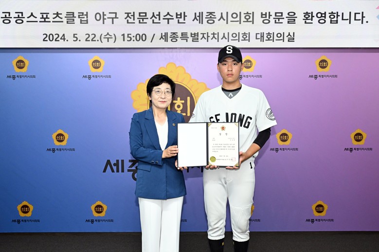 현재 세종시에는 야구선수를 꿈꾸는 유소년을 위한 전문적인 중‧고등학교 야구팀이 없다. 이날 이순열 의장은 이처럼 야구 꿈나무 육성이 어려운 현실에서도 2년 연속 전국 단위 유소년야구대회에서 우승을 차지한 선수들을 격려하는 시간을 가졌다.