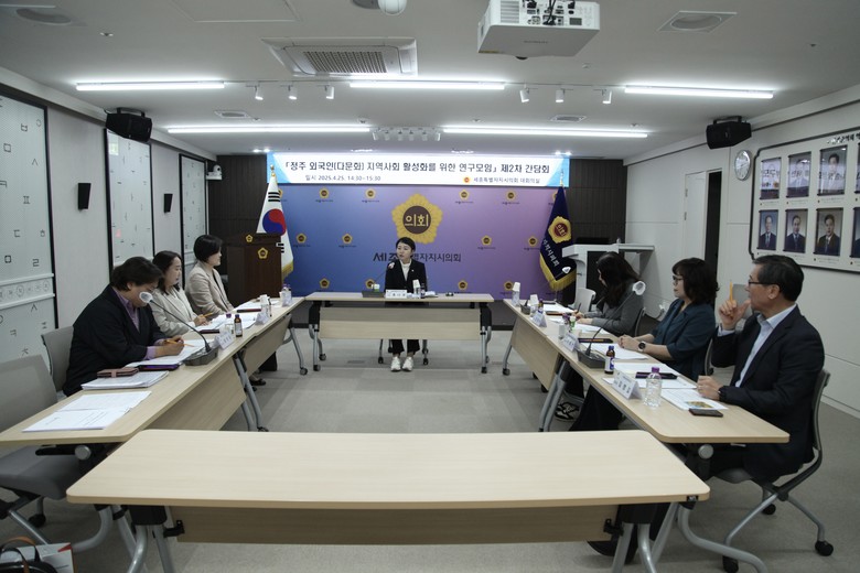 [세종 세계타임즈=이채봉 기자] 세종특별자치시의회(의장 임채성)는 4월 25일 의회청사 1층 대회의실에서 ‘정주 외국인(다문화) 지역사회 활성화를 위한 연구모임’ 제2차 간담회를 열었다.
