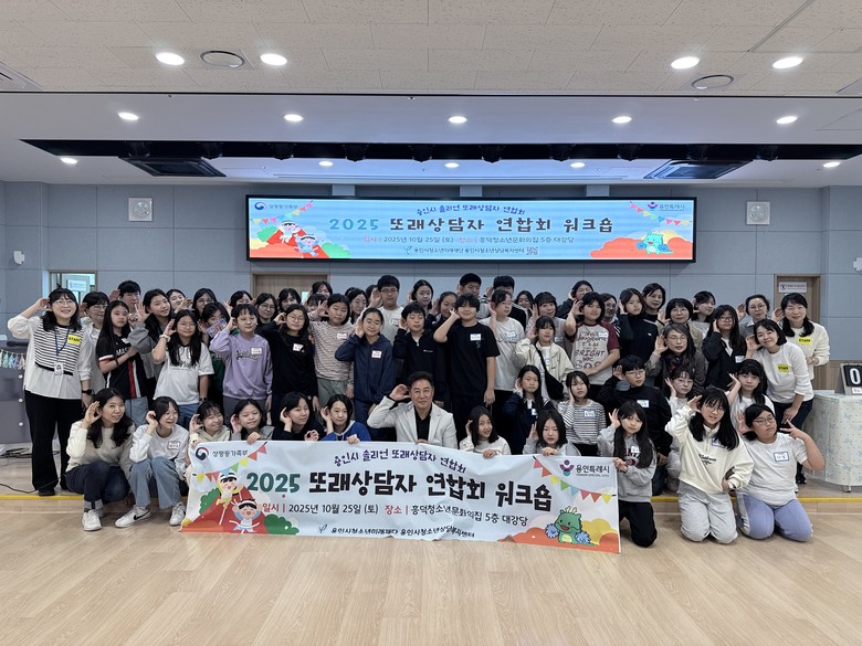 | ▲2025년 또래상담자 연합회 ‘또래심청이(心靑耳)’ 워크숍 기념촬영.(사진=용인시청소년미래재단) |