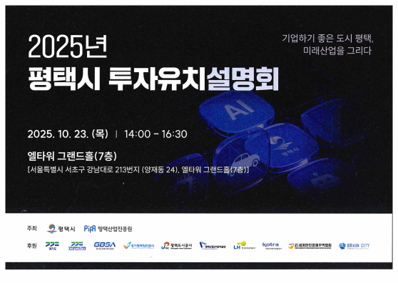 평택시 관계자는 “이번 설명회는 평택의 산업 인프라와 글로벌 투자 잠재력을 국내외 기업에 널리 알리고, 미래 성장산업 중심도시로서의 위상을 강화하는 계기가 될 것”이라고 밝혔다.