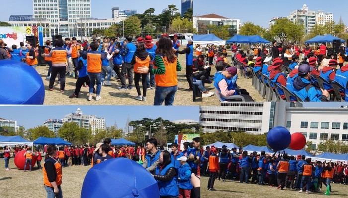 [세계타임즈 이장성 기자] 다양한 봉사를 꾸준히 하고 있는 SNS 대전시 봉사단체 사랑의 사다리 밴드(리더 이정제)는 12일 오전10시, 대전시청앞 보라매공원에서 보문장애인자립생활센터(센터장 신인수) 주관으로 진행된 제3회 BOM장애인예체능대회에서 봉사를 통해서 우리 사회의 따뜻한 사랑을 실천하였다.
