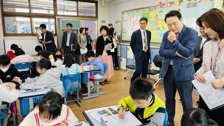 오늘 광명서초등학교를 방문한 임태희 경기도교육감님과 여러 관계자들, 이용현 광명교육지원청 교육장을 비롯한 여러 참석자들은 IB 교육과 개념기반 탐구수업이 현장에 잘 적용되도록 지원을 아끼지 않겠다고 하였다.