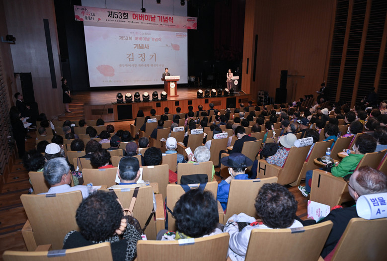▸ 효행 유공자 포상, 축하공연 등 다채로운 행사 마련 [세계타임즈=대구 한윤석 기자] 대구광역시는 5월 8일(목) ‘제53회 어버이날’ 기념행사를 맞아 제2본점 대강당(북구 칠성동)에서 어르신과 내빈 400여 명을 모시고, 효행자 등 유공자 6명을 표창했다.