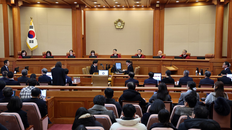 [세계타임즈 = 이장성 기자] 윤석열 대통령 탄핵 심판의 두번째 변론기일인 16일 오후 서울 종로구 헌법재판소에 정계선(왼쪽부터), 김복형, 정정미, 이미선, 문형배, 김형두, 정형식, 조한창 헌재 재판관들이 심판정에 앉아 있다. 2025.1.16 [공동취재]