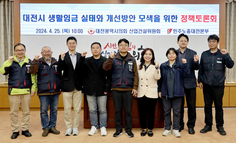 [대전 세계타임즈=이채봉 기자] 대전시의회 교육위원회 김민숙 의원(더불어민주당, 비례대표)은 25일 오전 10시 의회 소통실에서 ‘대전시 생활임금 실태와 개선방안 모색을 위한 정책토론회’를 개최했다.