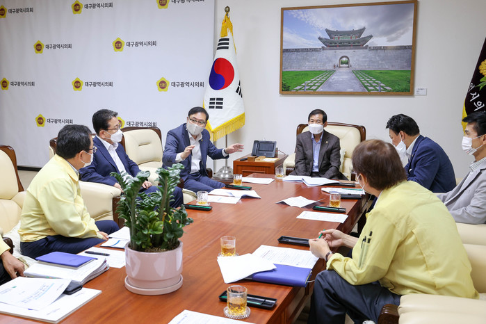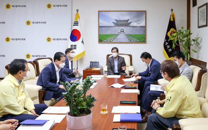 [대구=세계타임즈 한성국 기자] 대구시의회는 8. 25.(수) 오전 10시에 의회 접견실에서 의장단 회의를 열어 취수원 이전 문제, 삼성 데이터센터 유치 등 주요 현안에 대해 대구시 집행부의 추진 현황을 보고 받았다.
