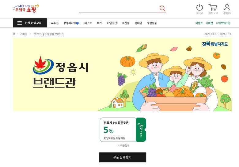 시 관계자는 “정읍 농특산물이 온라인 시장에서도 소비자가 믿고 찾는 대표 브랜드로 자리매김할 수 있도록 지원을 아끼지 않겠다”고 말했다.