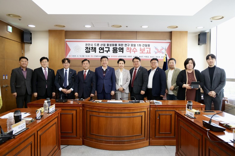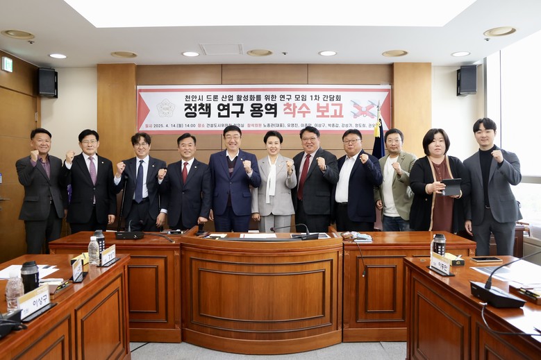 [천안시 세계타임즈=이현진 기자] 천안시의회(의장 김행금)는 의원 연구모임인 '천안시 드론산업 활성화 연구모임'이 지난 4월 14일 착수보고 간담회를 열고, 드론산업 육성을 위한 정책연구에 본격 착수했다고 15일에 밝혔다.