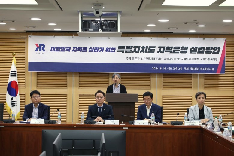 원대식 지경원 금융사업단장은 발제를 통해, 현 금융산업 구조상 신규 지역은행 설립이 어려운 상황을 진단하고, 산업은행이나 중소기업은행 등 국책은행의 지역본부 및 지점을 개편하여 지역은행으로 전환하는 방식으로, 은행 영업 이익의 지역 환원, 은행 독과점 문제 해소와 함께 금융시스템의 안전성을 높일 수 있다고 주장했다.