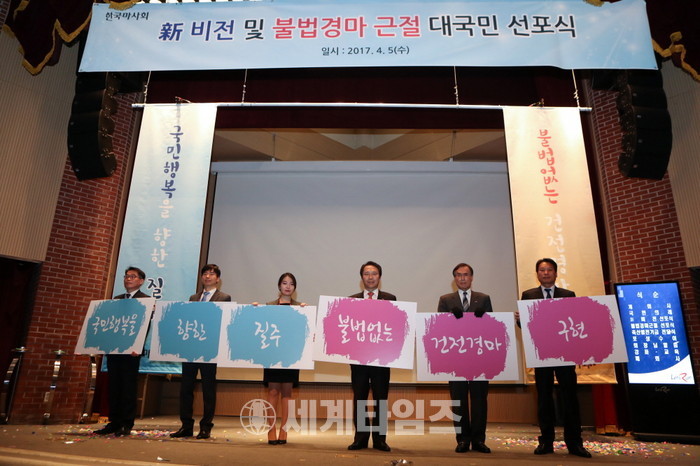 [세계타임즈 김장수 기자] 한국마사회는 4월 5일 오전 10시 렛츠런파크 서울에서 ‘2017년 불법경마 근절 대국민 선포식’을 개최했다.