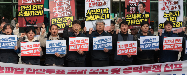 통합노조는 이날 공사 신답별관 대강당에서 임시대의원대회를 열어 쟁의행위 안건을 결의했다.노조는 다음 달 3∼5일 조합원을 대상으로 쟁의행위 찬반투표를 할 계획이다. 앞서 18일부터는 서울시청 앞에서 안전인력 충원과 구조조정 철회를 요구하는 선전전에도 돌입했다.