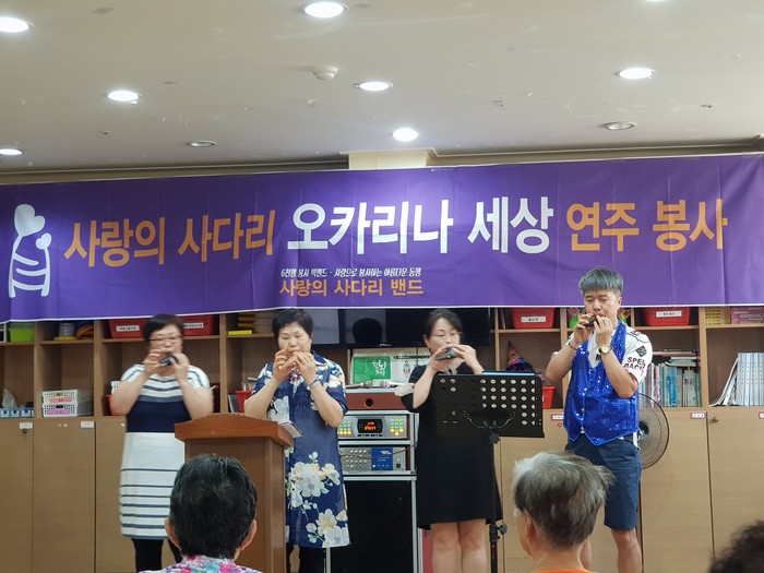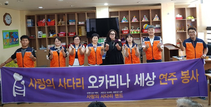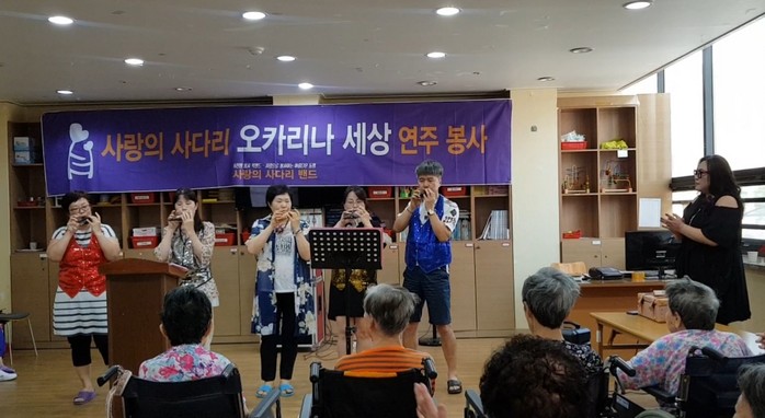 6천명 SNS밴드 회원들이 활동하고 있는 사단법인 사랑의 사다리 밴드의 오카리나 세상 연주봉사는 매월 셋째 주 토요일에 요양원등에서 꾸준히 하고 있다.