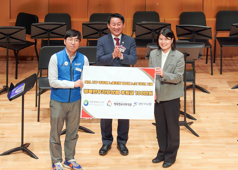 [서구 세계타임즈=이채봉 기자] 대전서구공무원노동조합(위원장 김원영)은 대전 최초 발달장애인 클래식 앙상블인 행복한우리복지관 소속 ‘행복한우리앙상블’의 정기 연주회를 방문, 기탁금 100만 원을 전달했다.