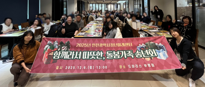 [인천 세계타임즈=심하린 기자] 인천시사회서비스원 소속 인천시청년미래센터는 최근 가족돌봄청년과 가족을 초대해 ‘함께라서 따뜻한, 돌봄 가족 송년회’를 열었다고 10일 밝혔다.