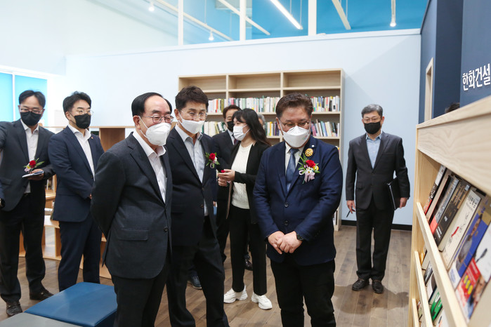 [세계타임즈 이진화 기자]한화건설(대표이사 최광호)이 29일 인천 미추홀구에 위치한 ‘시민협력플랫폼 공감’에서 포레나 도서관 100호점을 개관했다.