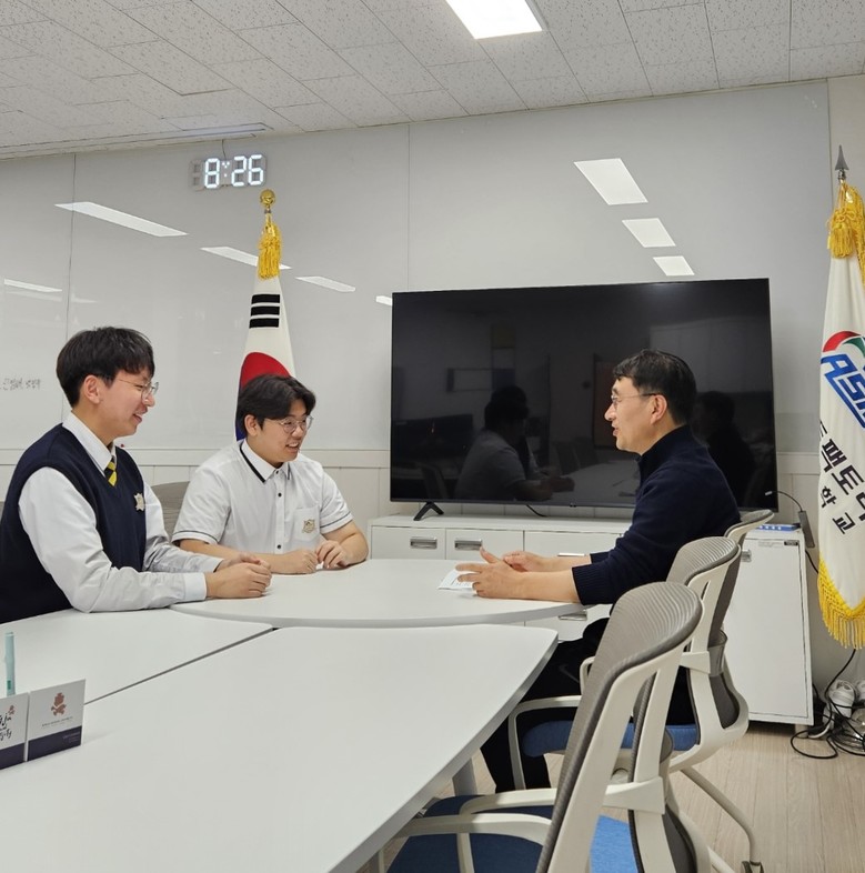 [아산시 세계타임즈=백택기 기자] 아산스마트팩토리마이스터고등학교(교장 조동헌)는 지난 5월 7일부터 학교장과 함께 전교생을 대상으로 아침, 점심, 저녁 식사시간을 활용하여 릴레이 상담을 실시하고 있다. 아산스마트팩토리마이스터고등학교는 2022년 국내 최초 스마트팩토리 관련 마이스터고등학교로 개교하였고 스마트팩토리 영마이스터를 양성하고 있다. 또한 전교생 모두가 기숙사 생활을 의무화하고 정규수업 7시간, 방과후 수업 3시간, 자율동아리 활동 1시간 등 고강도 교육 활동을 하고 있다.