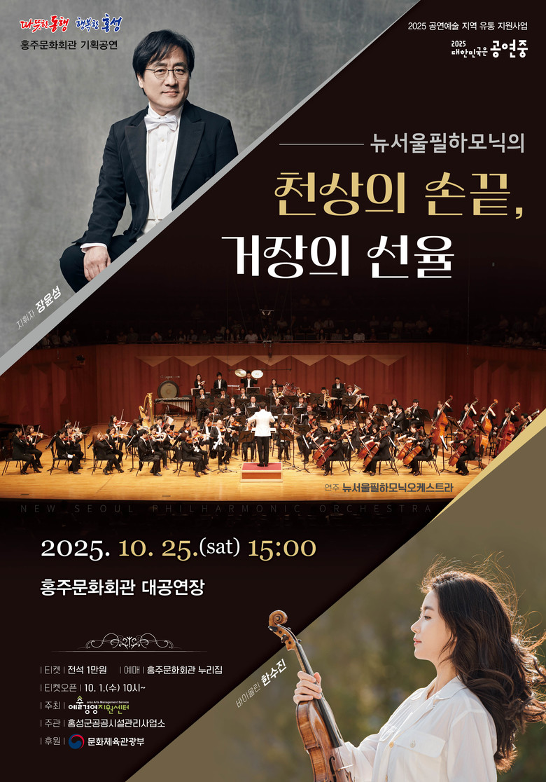 홍성군에 따르면 지휘자 장윤성이 이끄는 뉴서울필하모닉오케스트라와 세계적인 바이올리니스트 한수진의 협연으로 차이코프스키와 브람스 음악을 통해 관객들과 만날 예정이다.
