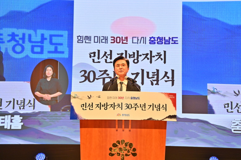 도는 1일 도청 문예회관에서 김 지사와 심대평·유흥수·박태권 전 지사, 시장·군수, 주민 대표 등 700여 명이 참석한 가운데 민선 지방자치 30주년 기념식을 개최했다.