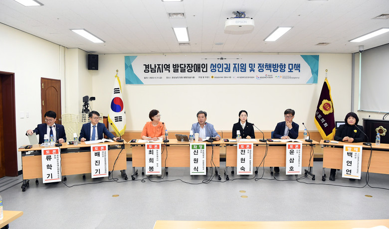 이번 토론회는 경상남도 및 시군 관계자, 관련 기관 종사자, 발달장애인 부모 등이 참여해 발달장애인 성인권 증진을 위한 지원체계 마련의 중요성과 지역사회의 관심 및 인식 제고 필요성 등 다양한 의견이 제시됐다.