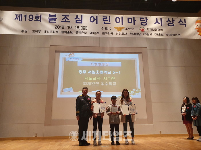 광주광역시 소방안전본부는 ‘제19회 전국 불조심 어린이 마당’에서 서일초등학교 5학년 1반이 전국 3위로 안전인재상을 수상했다고 18일 밝혔다.