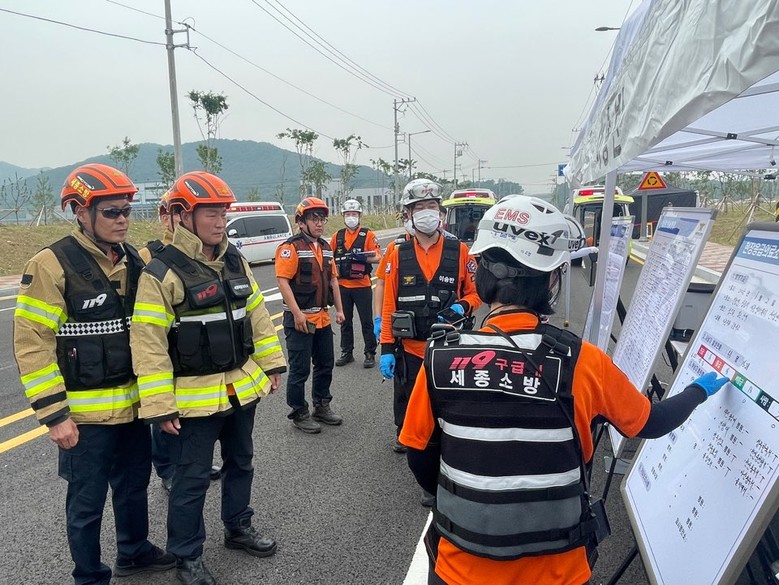긴급구조훈련은 유관기관과의 긴밀한 공조체계 구축 및 재난현장 지휘 강화를 목적으로 ‘재난 및 안전관리 기본법’에 근거해 매년 진행되고 있다. 이날 훈련에는 소방본부, 세종시경비단 등 군부대와 세종경찰청, 한국가스공사, 논산국토관리사무소, 세종시 보건소 등 19개 기관이 참여했으며 90여 명의 인력과 60여 대의 장비가 동원됐다.